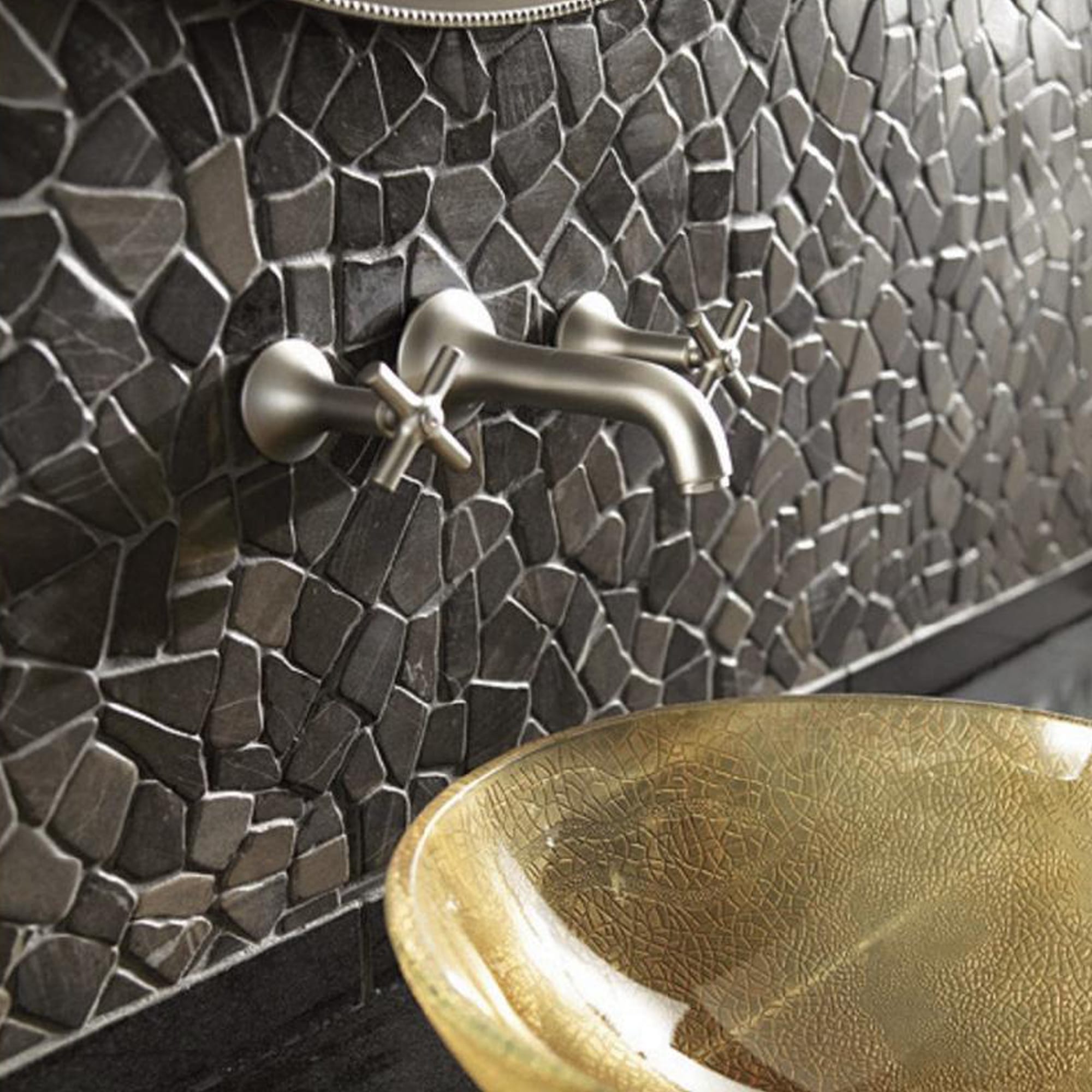 • 12 in. width x 12 in. length, mesh-mounted mosaic pebbles