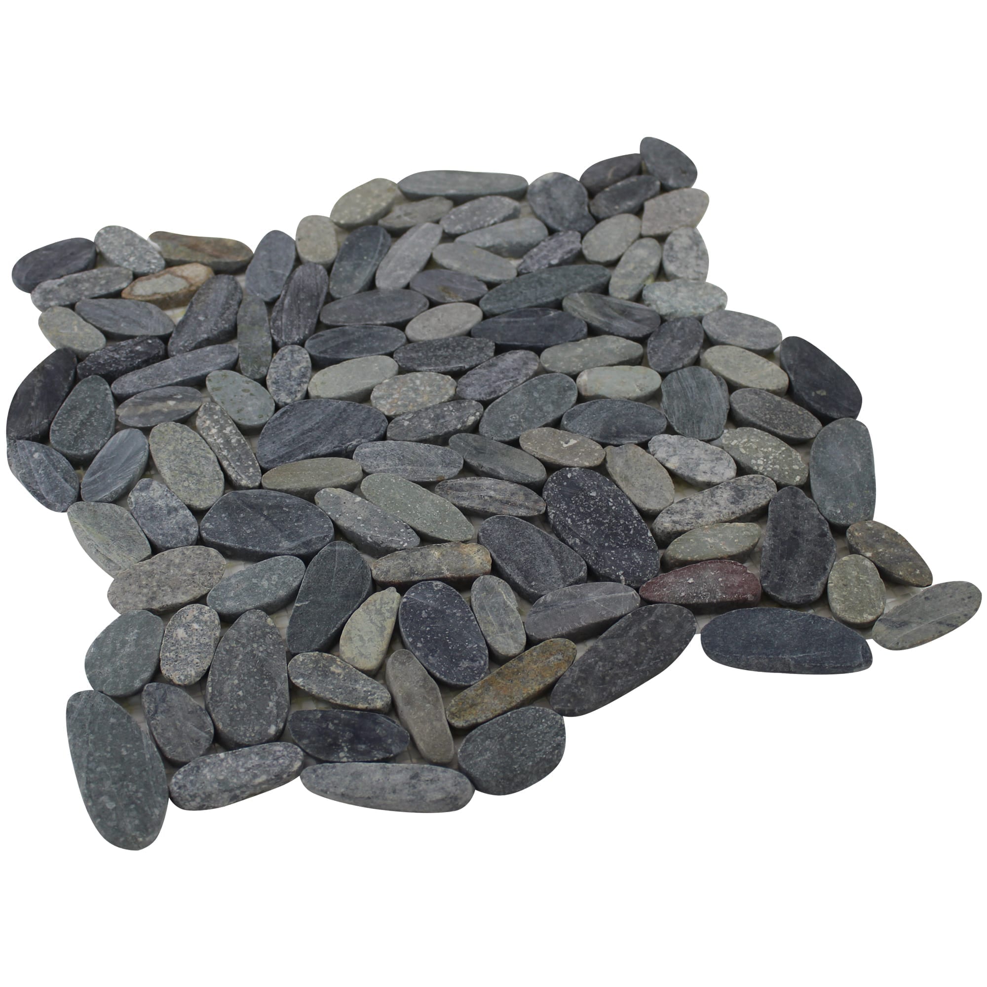 - 12 in. width x 12 in. length, mesh-mounted mosaic pebbles