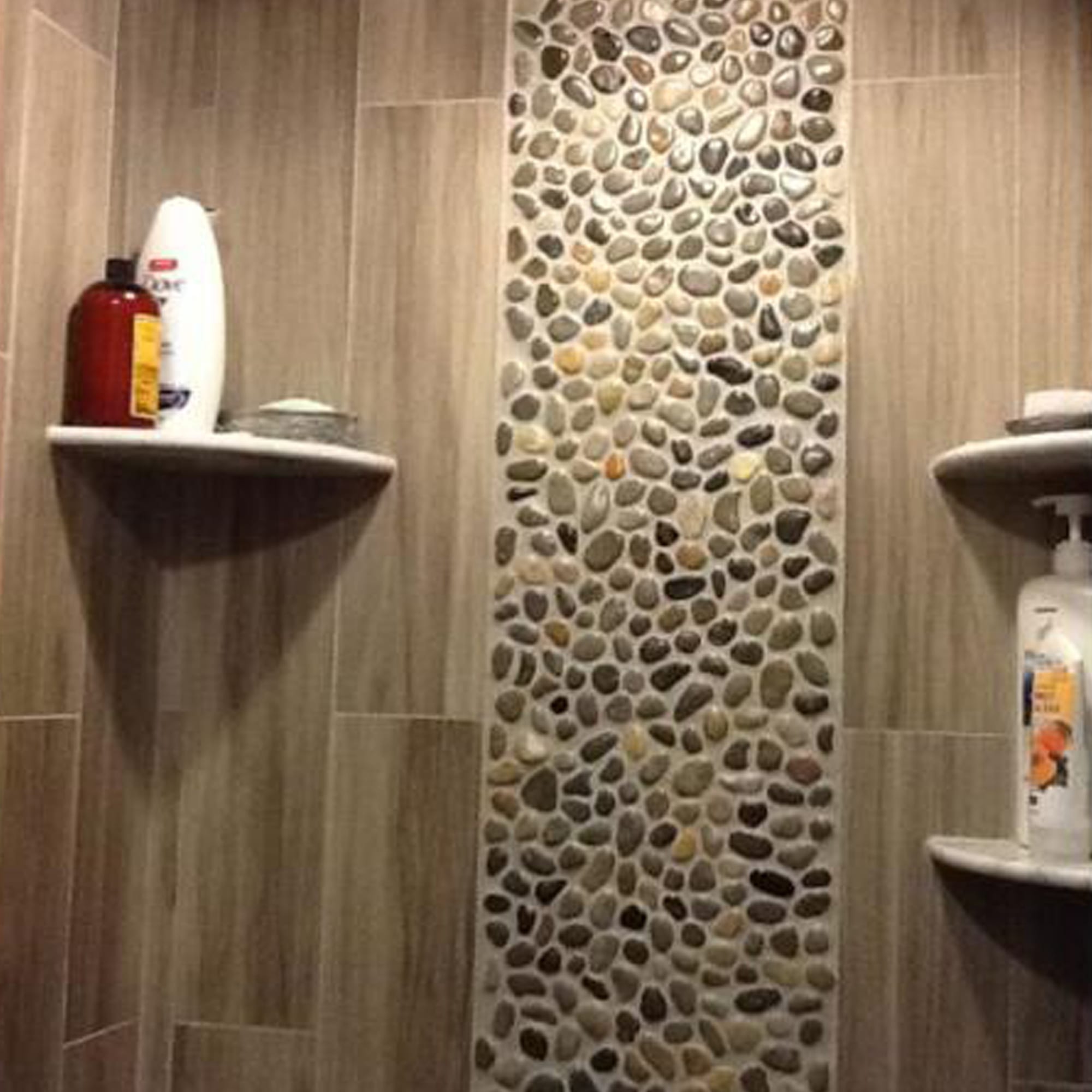 Rain Forest pebble stone floor and wall tiles incorporate smooth beautifully polished mixed pebbles mounted to a flexible mesh backing. Perfect for interior or exterior projects, pebble tiles create a beautiful and unique decorative mosaic look. Add a custom touch to all your floor and wall projects. Tiles are easy to install and use traditional tile grout.