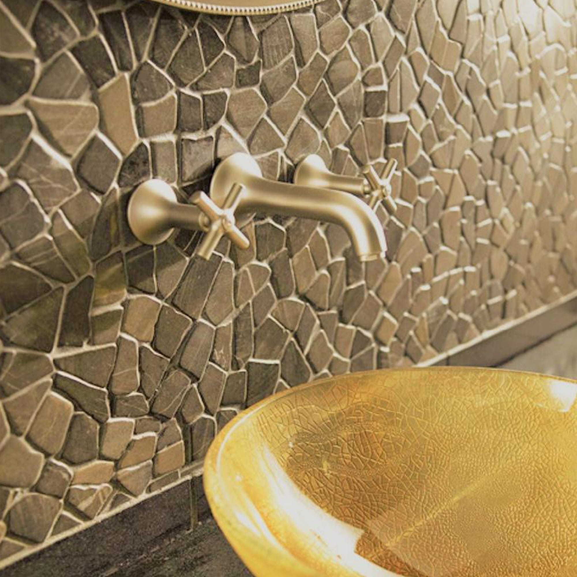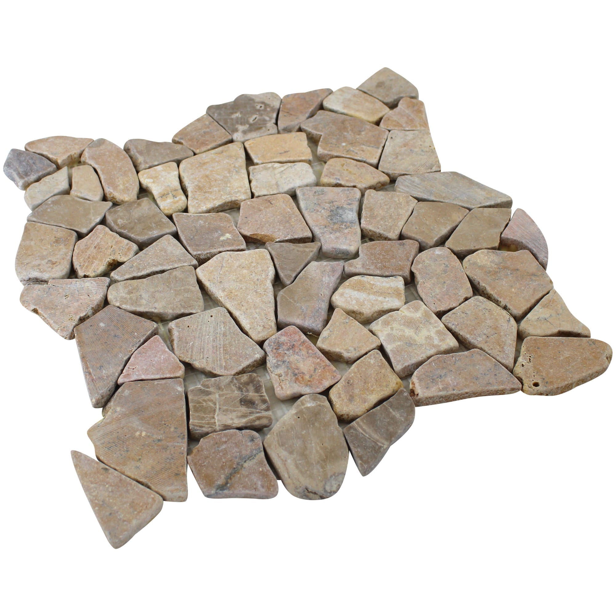 Rain Forest tan stone mosaic pebble stone floor and wall tiles incorporate smooth beautifully polished mixed pebbles mounted to a flexible mesh backing. Perfect for interior or exterior projects, pebble tiles create a beautiful and unique decorative mosaic look. Add a custom touch to all your floor and wall projects. Tiles are easy to install and use traditional tile grout.