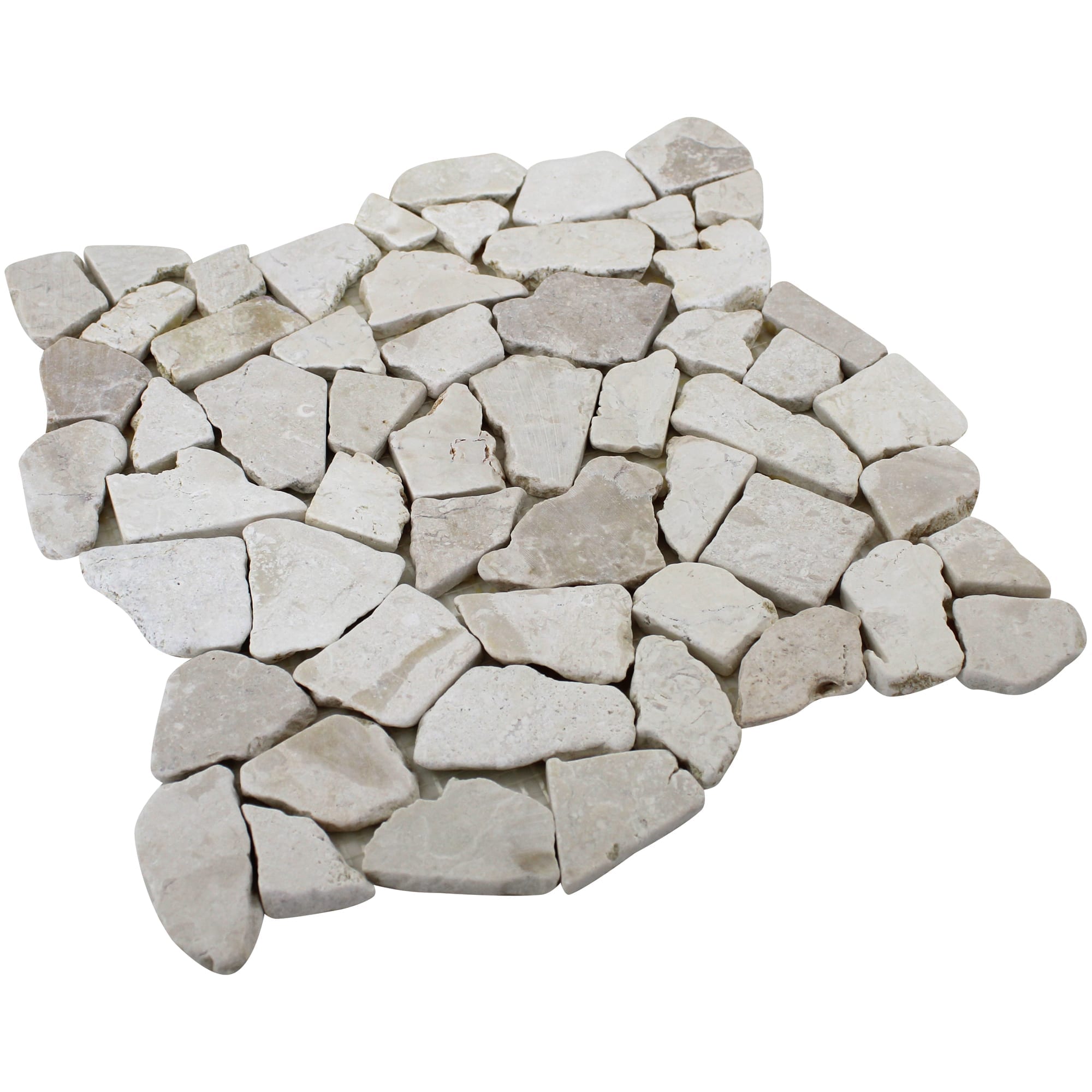• 12 in. width x 12 in. length, mesh-mounted mosaic pebbles